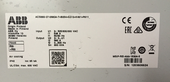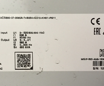 Przemiennik częstotliwości ACS 880-37-0580-7+B054+G313+K491+P911