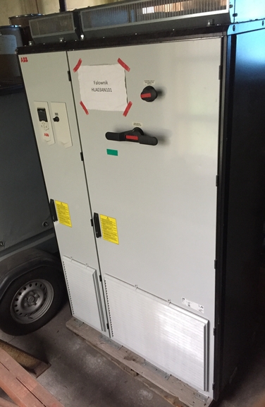 Waga falownika: 1180 kg, wymiary: 698x1230x2145 mm.